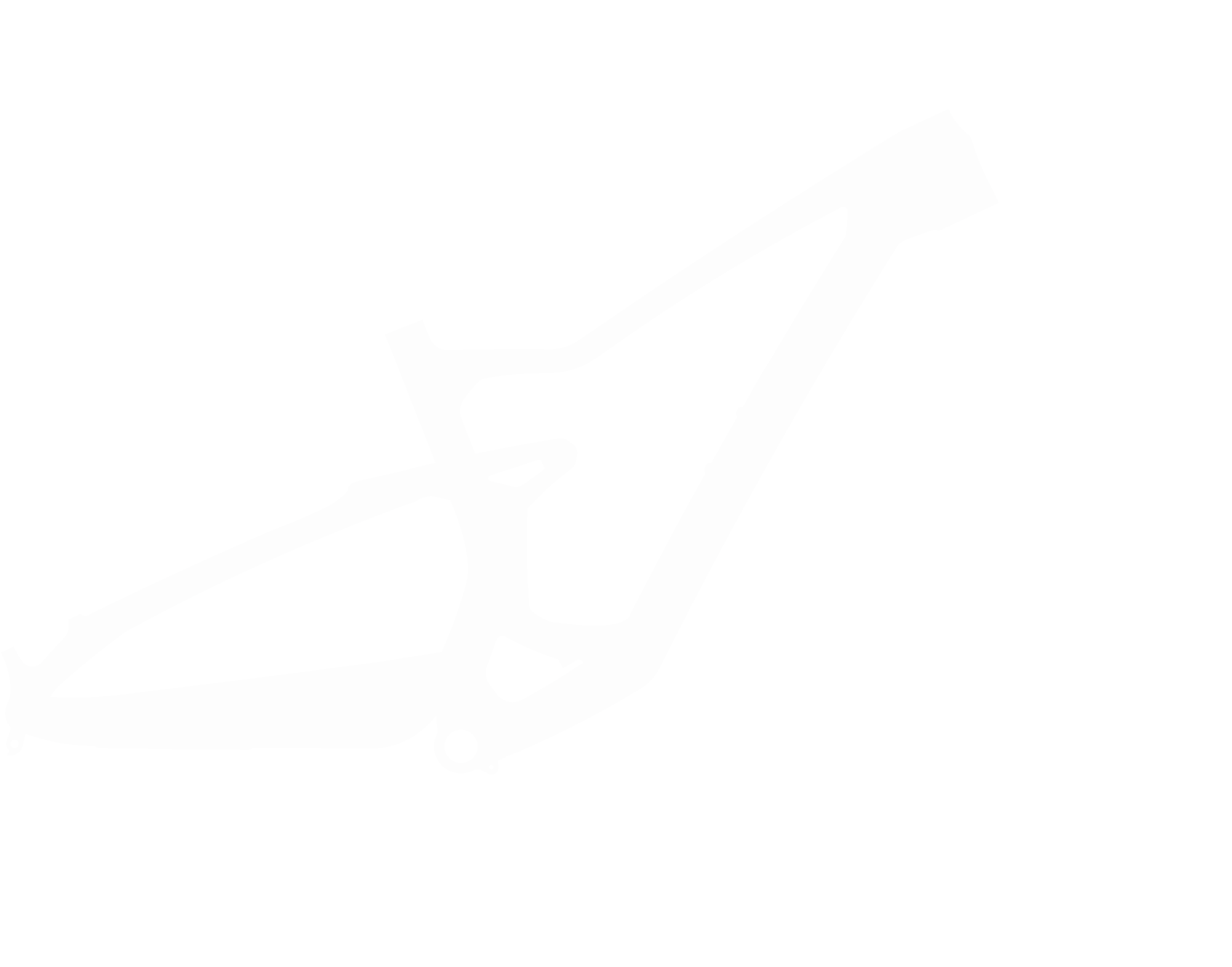 Rear pivot brake cable clip complements streamlined architecture and shuns frame rubbing.