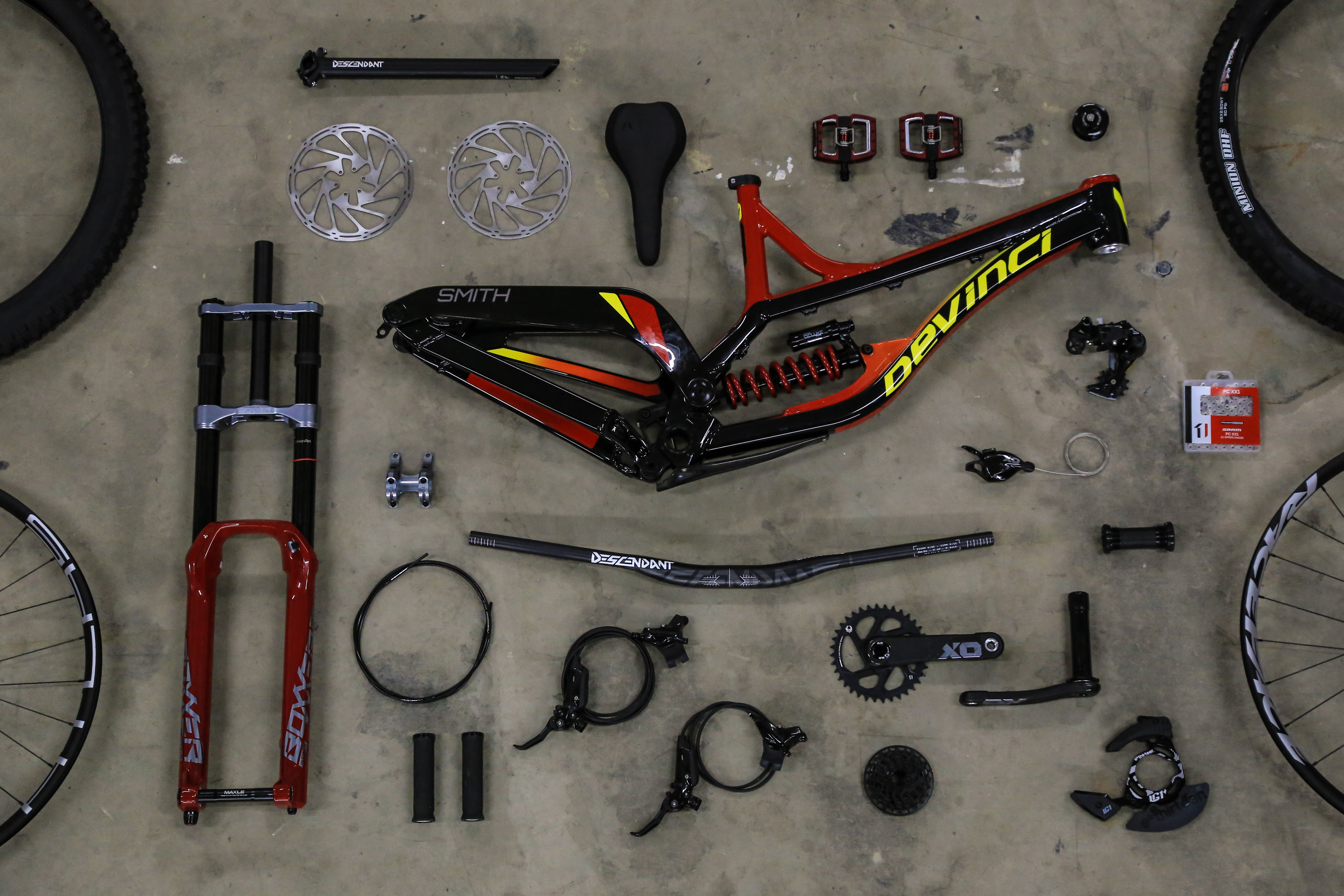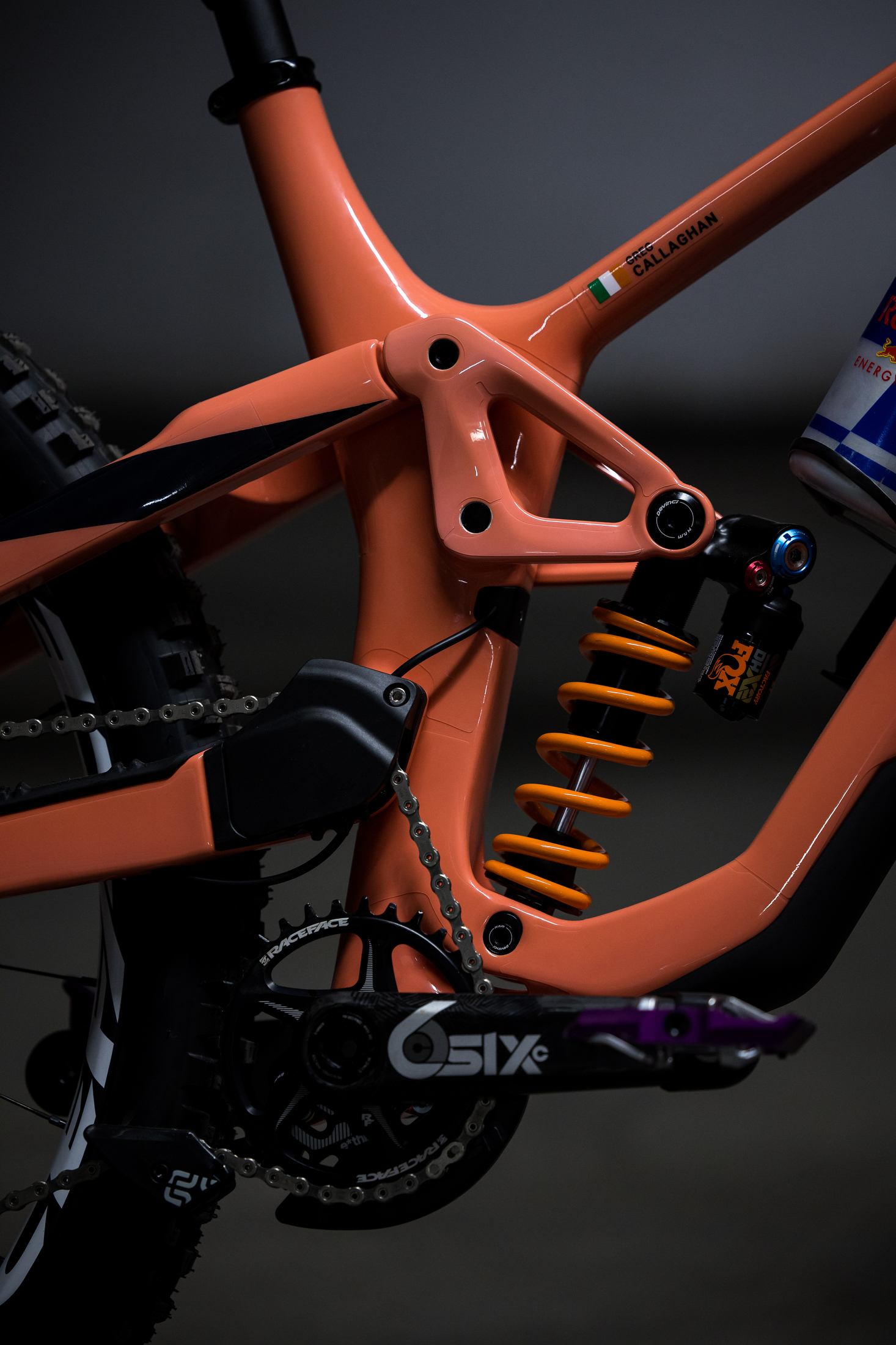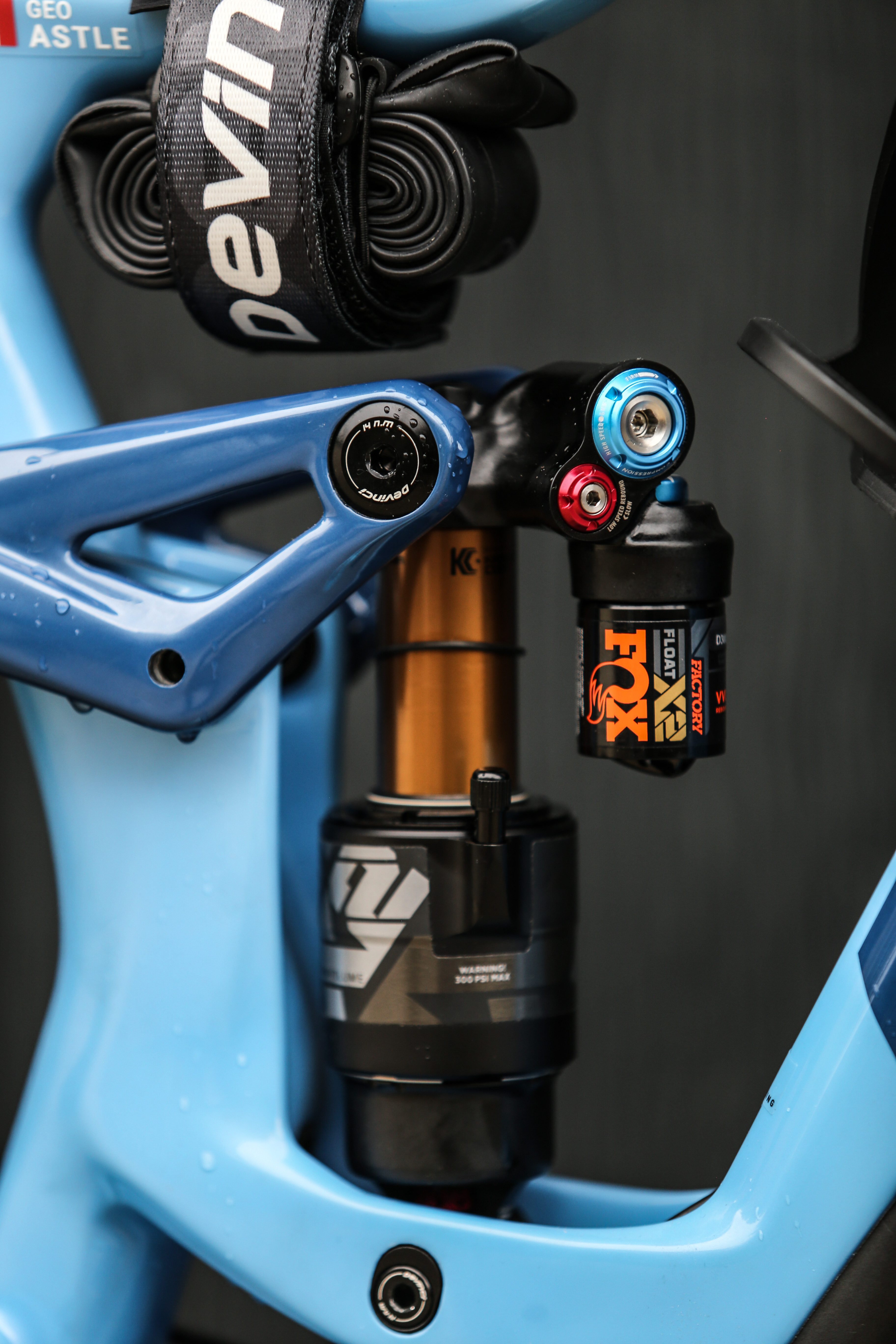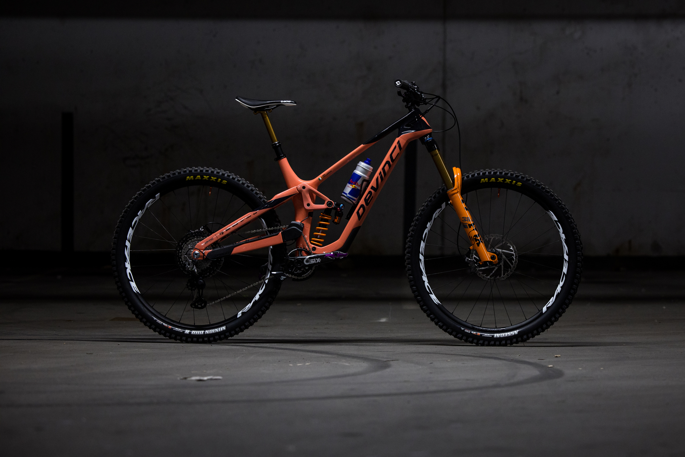 A match made in heaven. When the Cavalry Blue Troy Carbon meets the flaming Factory Orange of the Fox 36 Fork. Fully tricked out, this bike seems to fit in the ‘dream build’ theme pretty well!