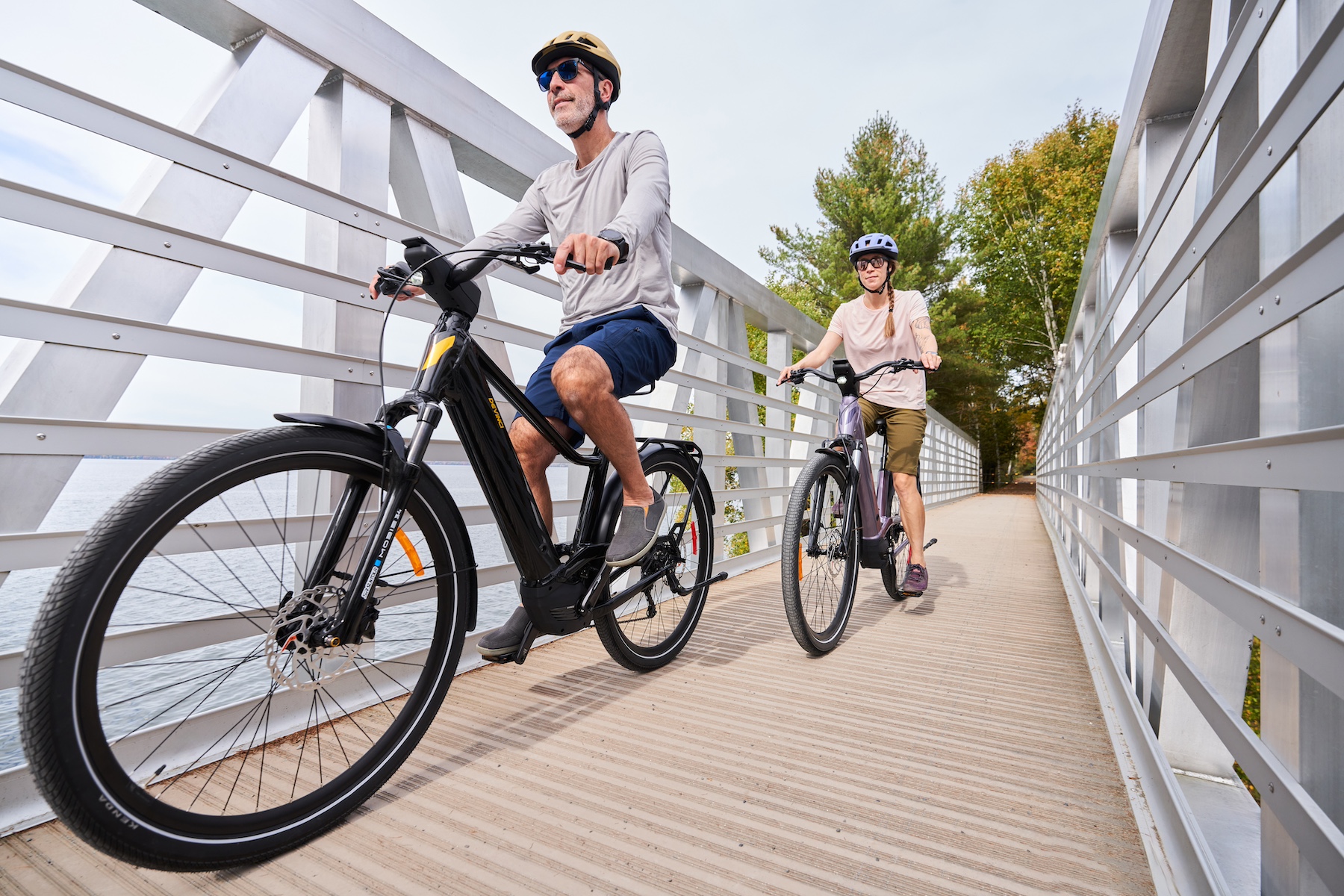 À la recherche de votre prochain vélo à assistance électrique ? Optez pour nos vélos hybrides électriques performants, durables et sécuritaires. Profitez de nouvelles aventures ou déplacez-vous plus rapidement que jamais avec le très confortable E-Griffin, E-Milano ou le dynamique E-Cartier.