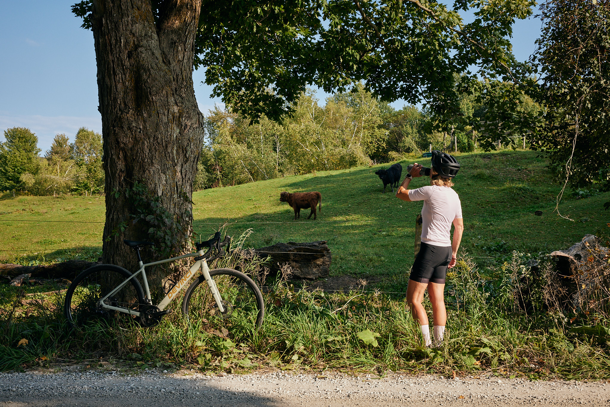 Quand je suis revenu de Patagonie, le désir d’explorer brûlait encore en moi. Le gravel m’a aidé à faire la transition. J’adore tracer des itinéraires dans ma région, en reliant des chemins de gravier, des routes secondaires tranquilles et des sentiers. Cela me permet de redécouvrir ma propre cour arrière. Et lorsque l’appel de l’aventure se fait sentir, je pars en solo ou avec des amis, en emportant ma tente et quelques sacs pour un week-end de bikepacking. J’ai réalisé qu’il n’est pas toujours nécessaire d’aller loin pour s’évader.
