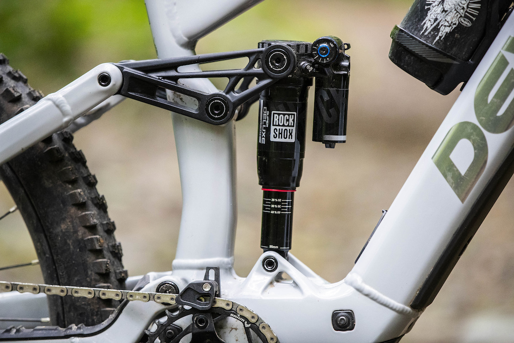 Devinci utilise un design de suspension split pivot pour l'E-Troy Lite. Cette configuration est censée permettre une suspension plus active lors du freinage grâce au pivot co-rotatif autour de l'axe arrière. Devinci affirme avoir optimisé la disposition et la cinématique de la suspension pour les vélos électriques.