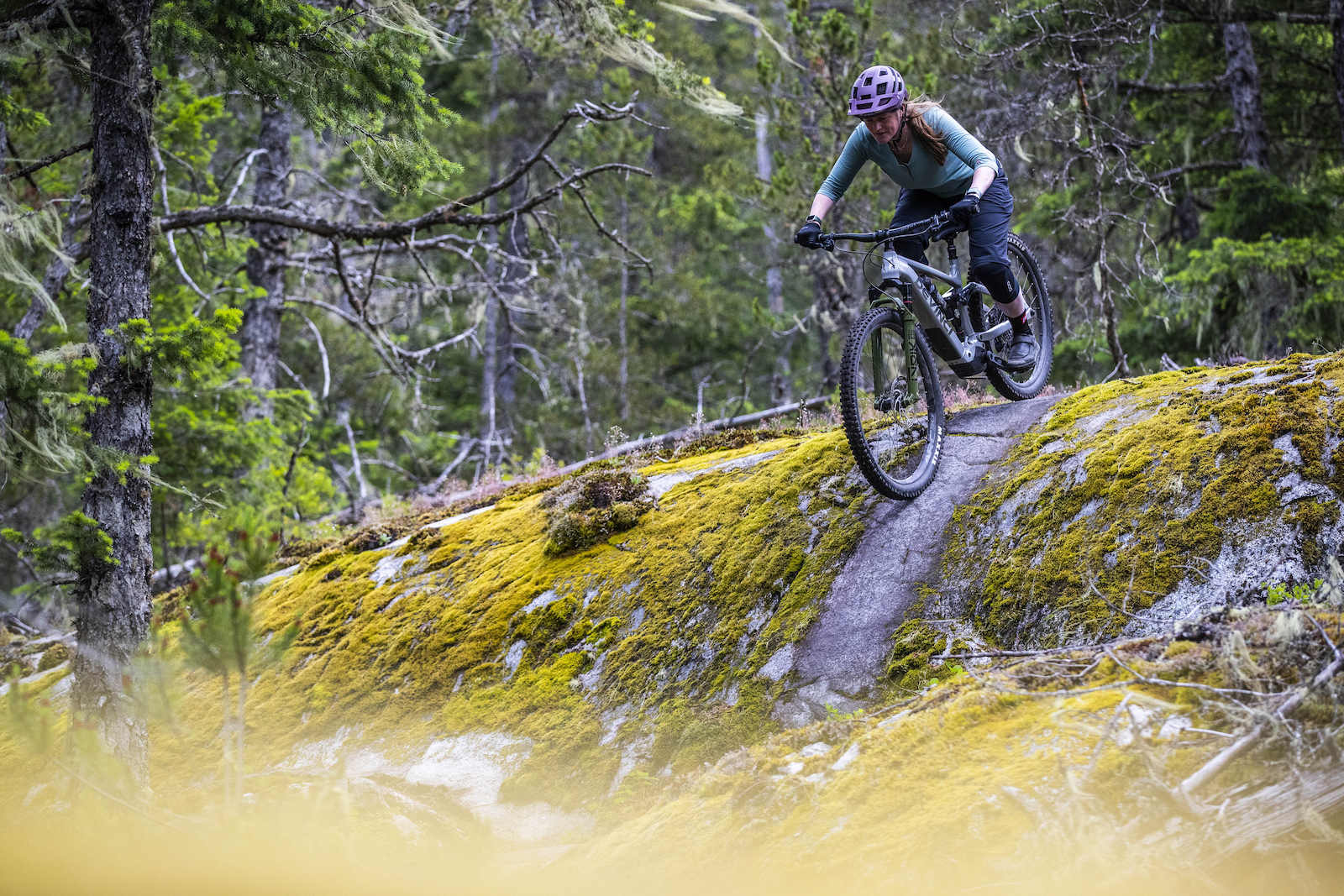 Avec le mode eMTB activé sur le moteur Bosch Performance SX, on a vraiment l'impression d'être récompensé pour chaque watt produit, car le moteur réagit à l'effort du cycliste et ajuste dynamiquement le facteur de support entre 140 % et 340 %. En gros, on peut obtenir la même assistance qu'en mode Turbo, mais il faut fournir plus de 190 watts pour y arriver, et le Bosch SX demande de pédaler à 100 rpm avant de délivrer une puissance élevée. Apprendre à utiliser le moteur est intuitif pour ceux qui viennent d'un vélo non-électrique, car il suffit d'augmenter la cadence pour obtenir la puissance nécessaire pour franchir les obstacles lors des montées.