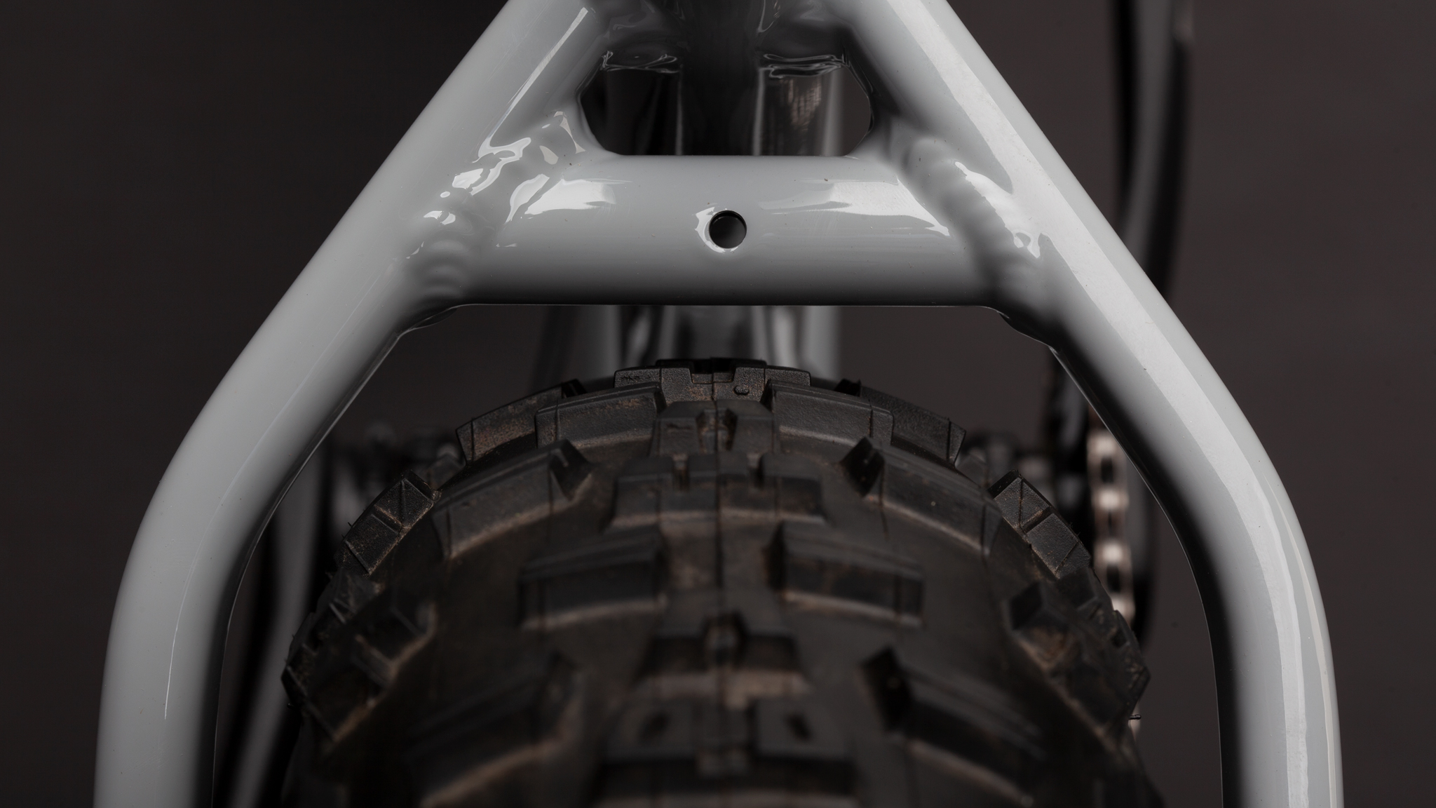 Le dégagement permet l’utilisation de pneus d’un maximum de 26 x 4,8. Résultat : une meilleure adhérence dans la neige.