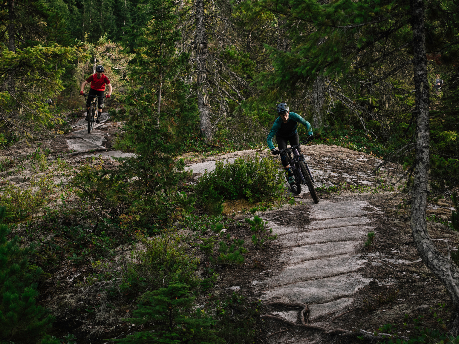 Base de longueur ajustée sur les G/TG vélos pour une sensation équilibrée en sentier, tandis que les triangles avant ajustés bonifient la stabilité et la manoeuvrablilité.