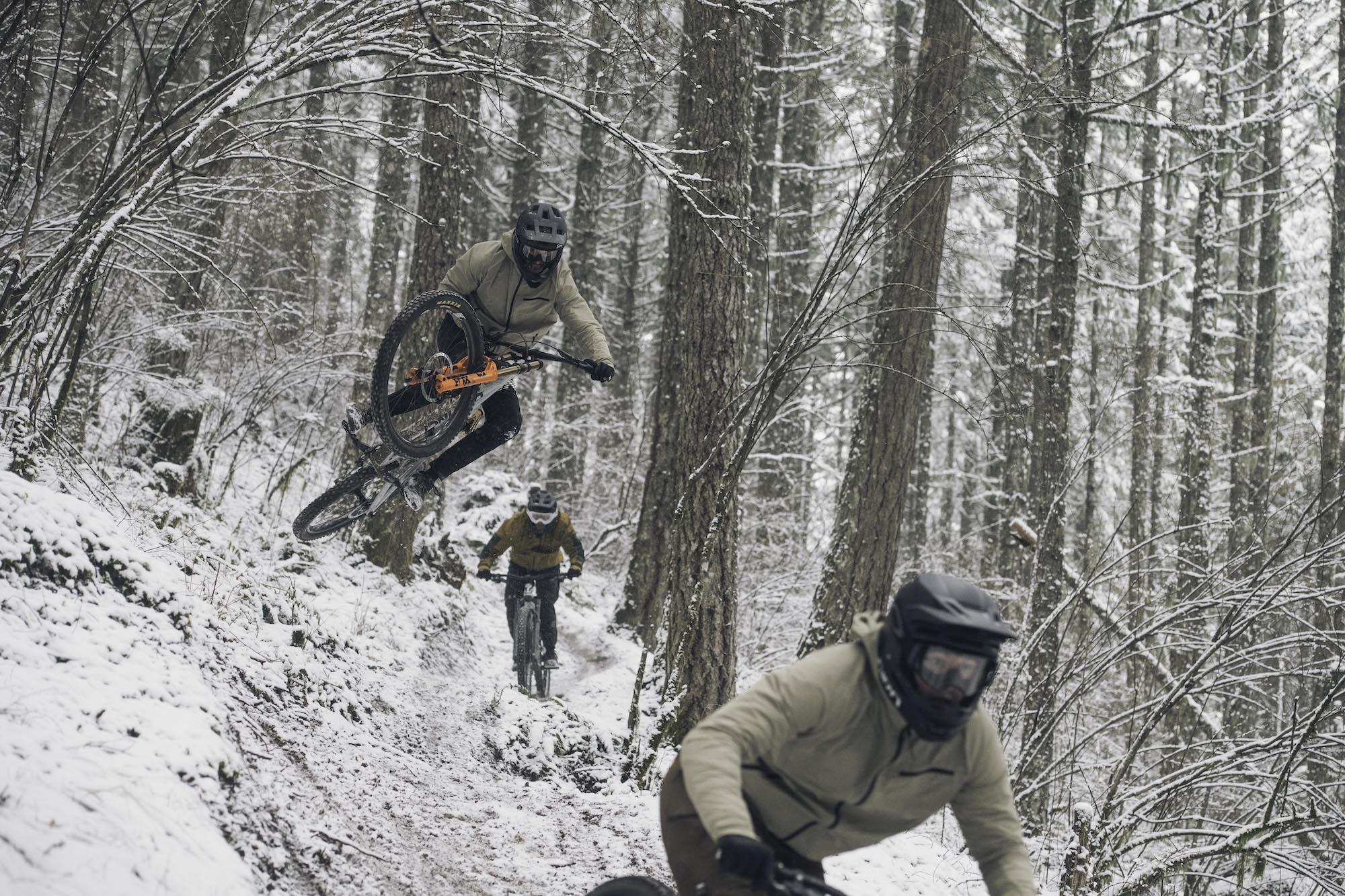 Le Chainsaw ne bronche jamais, quelle que soit la quantité de neige ou de glace qu’il doit affronter. Kenny Smith, Steve Vanderhoek et Jack Pelland ont d’ailleurs mis à l’épreuve, en plein hiver, notre nouveau vélo au nom légendaire. Dès leurs premiers coups de pédale sur les sentiers de descente glacés du mont Prevost, ils ont mis toute la gomme, et dans des conditions des plus difficiles. Or, il ne leur aura fallu que quelques manœuvres corsées dans le North Shore, au plus fort de l’hiver, pour constater que ce vélo était vraiment à toute épreuve.