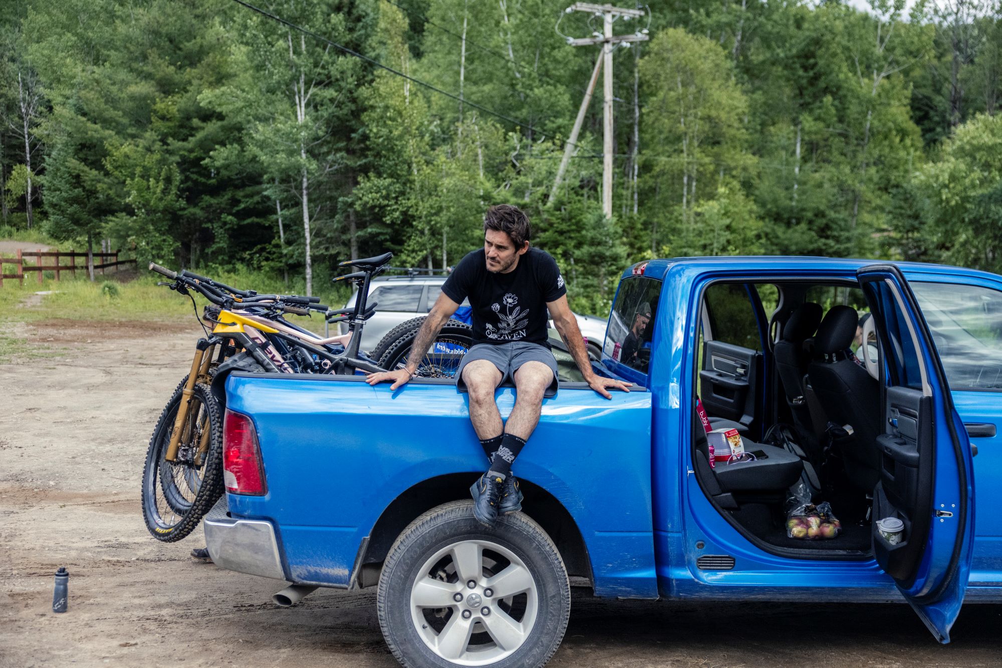La journée a commencé en beauté avec l’énergie contagieuse de Yoann qui a donné le ton. La mission du matin nous a conduits à La Légende, un sentier incontournable de Vallée Bras-Du-Nord, où nous avons capturé toutes les prises de vue souhaitées. Mais fidèle à lui-même, Yoann a voulu tenter un gap au-dessus de la rivière. Malheureusement, sa roue avant a heurté un trou, ce qui a mené à sa célèbre chute.