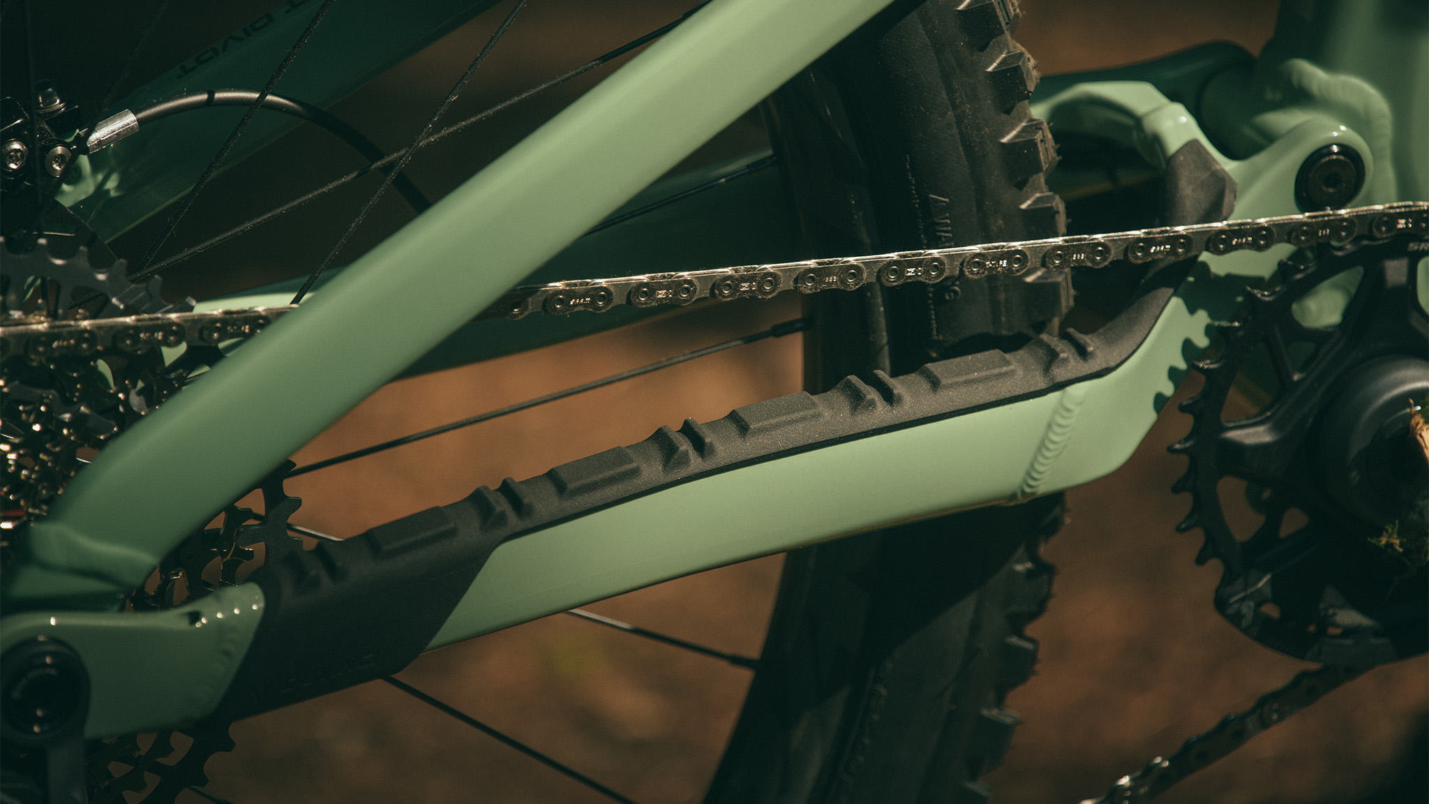 La base arrière et le bas du tube diagonal sont protégés pour faire face aux claquements de la chaîne et des aspérités du terrain.
