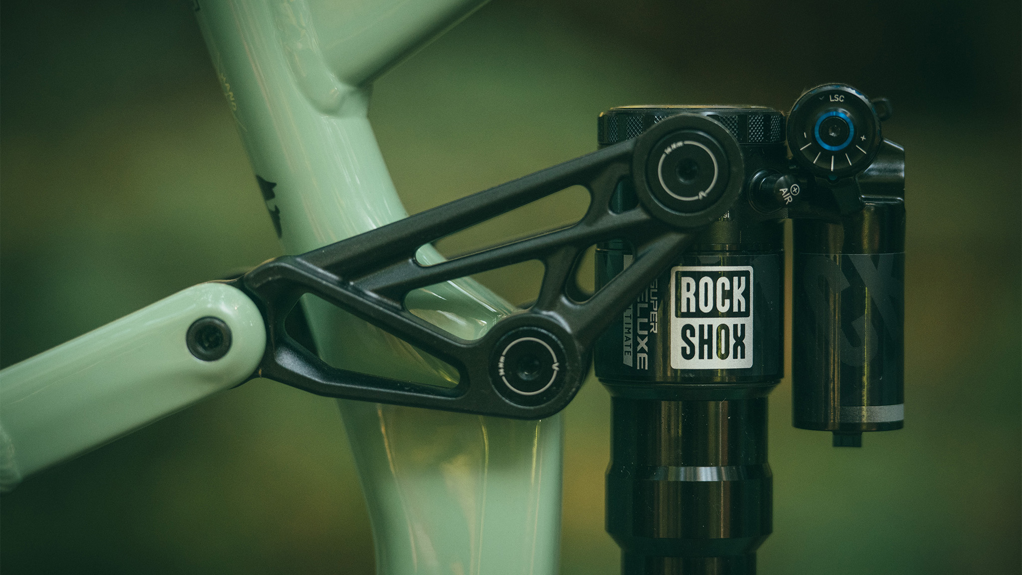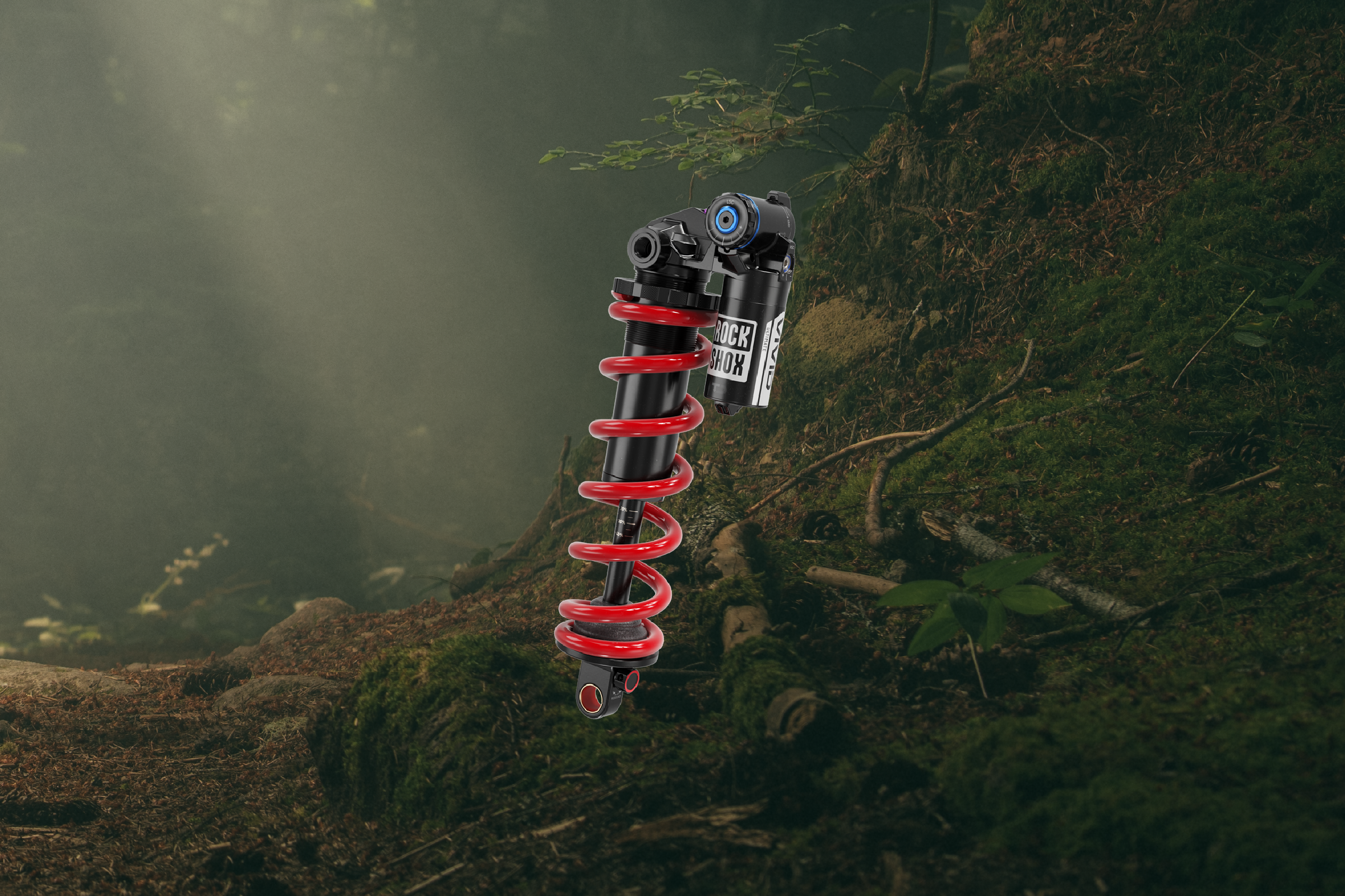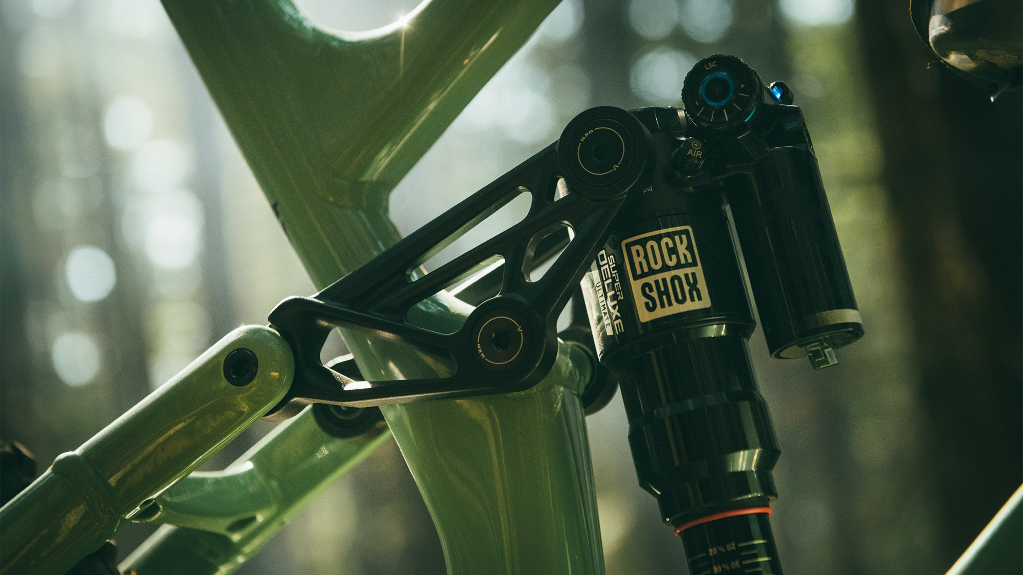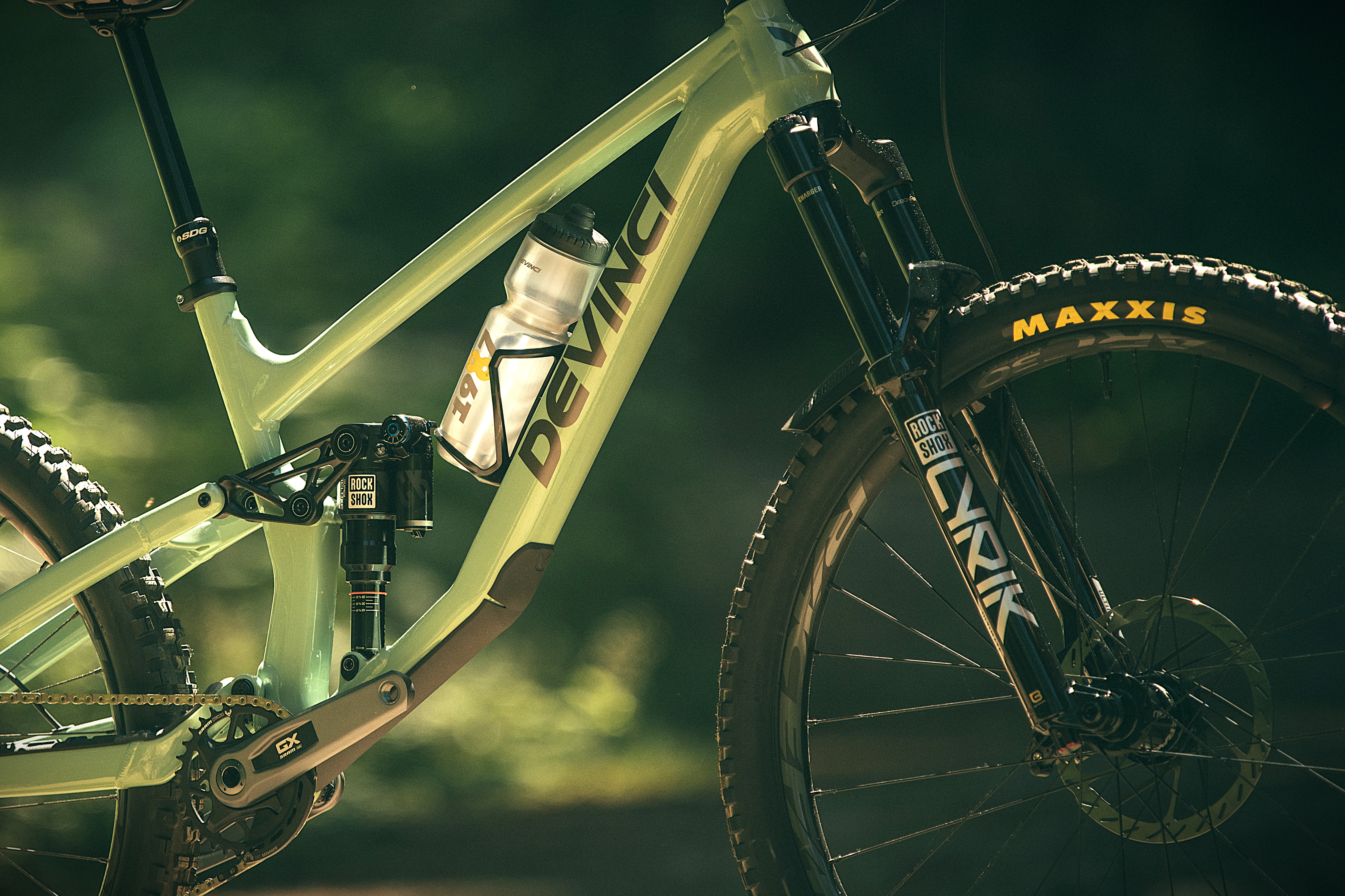 Tous les vélos Devinci à double suspension ont un ratio de suspension progressif qui fonctionne bien avec un amortisseur à ressort.
