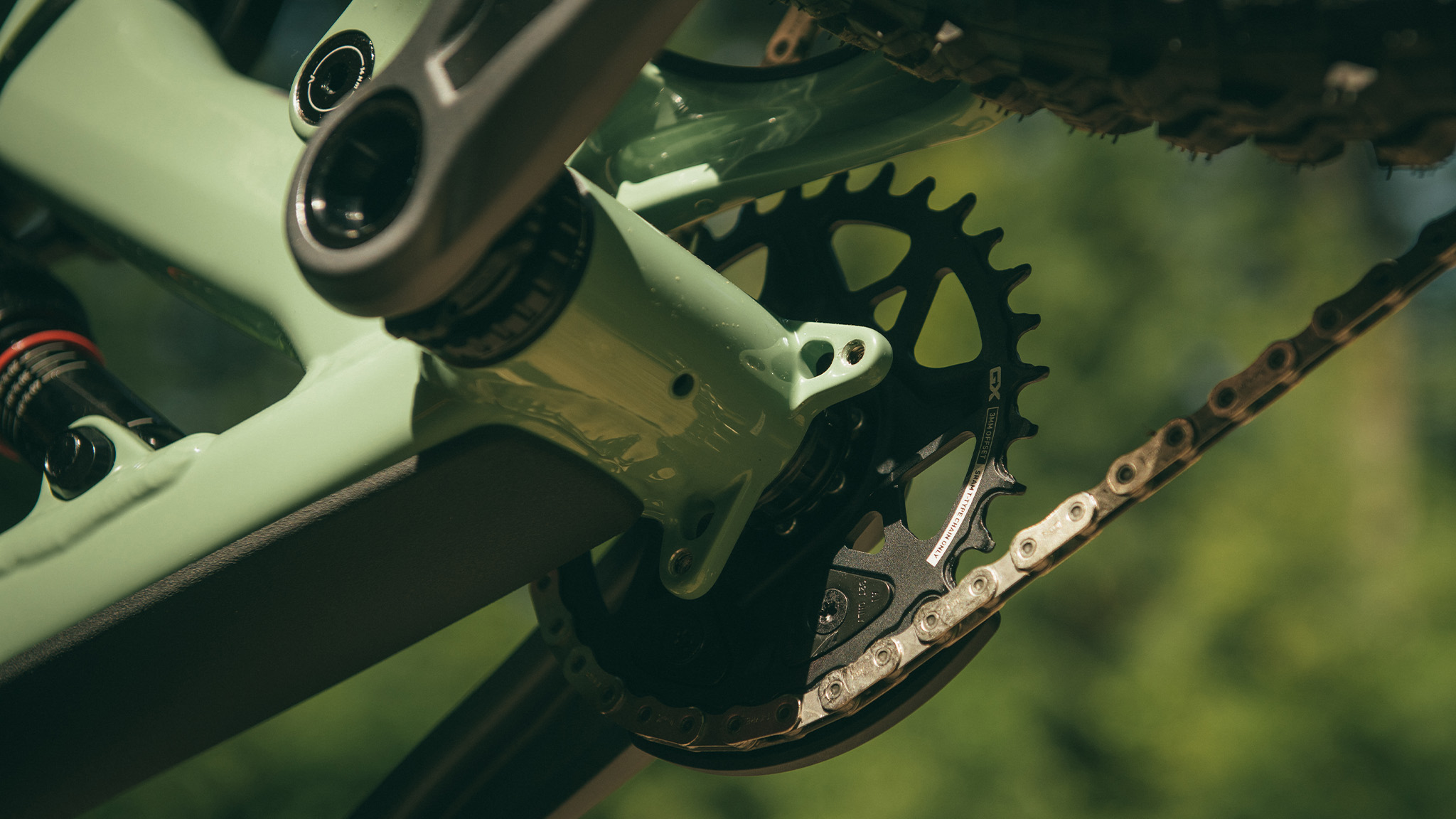 Conçu avec le Boost 148 mm et une ligne de chaîne de 55 mm pour maximiser le dégagement des pneus.