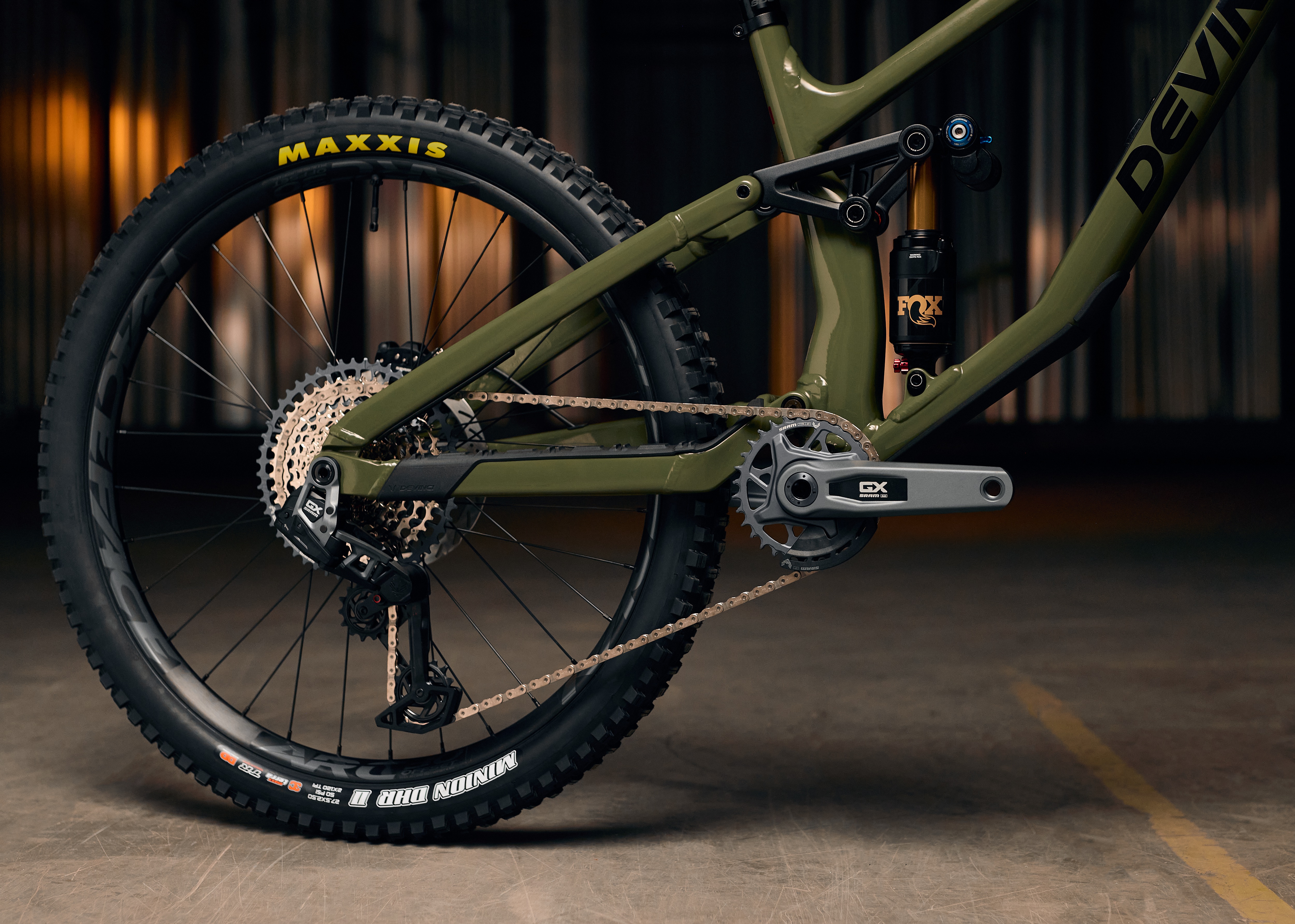 Tous les vélos Devinci à double suspension ont un ratio de suspension progressif qui fonctionne bien avec un amortisseur à ressort.